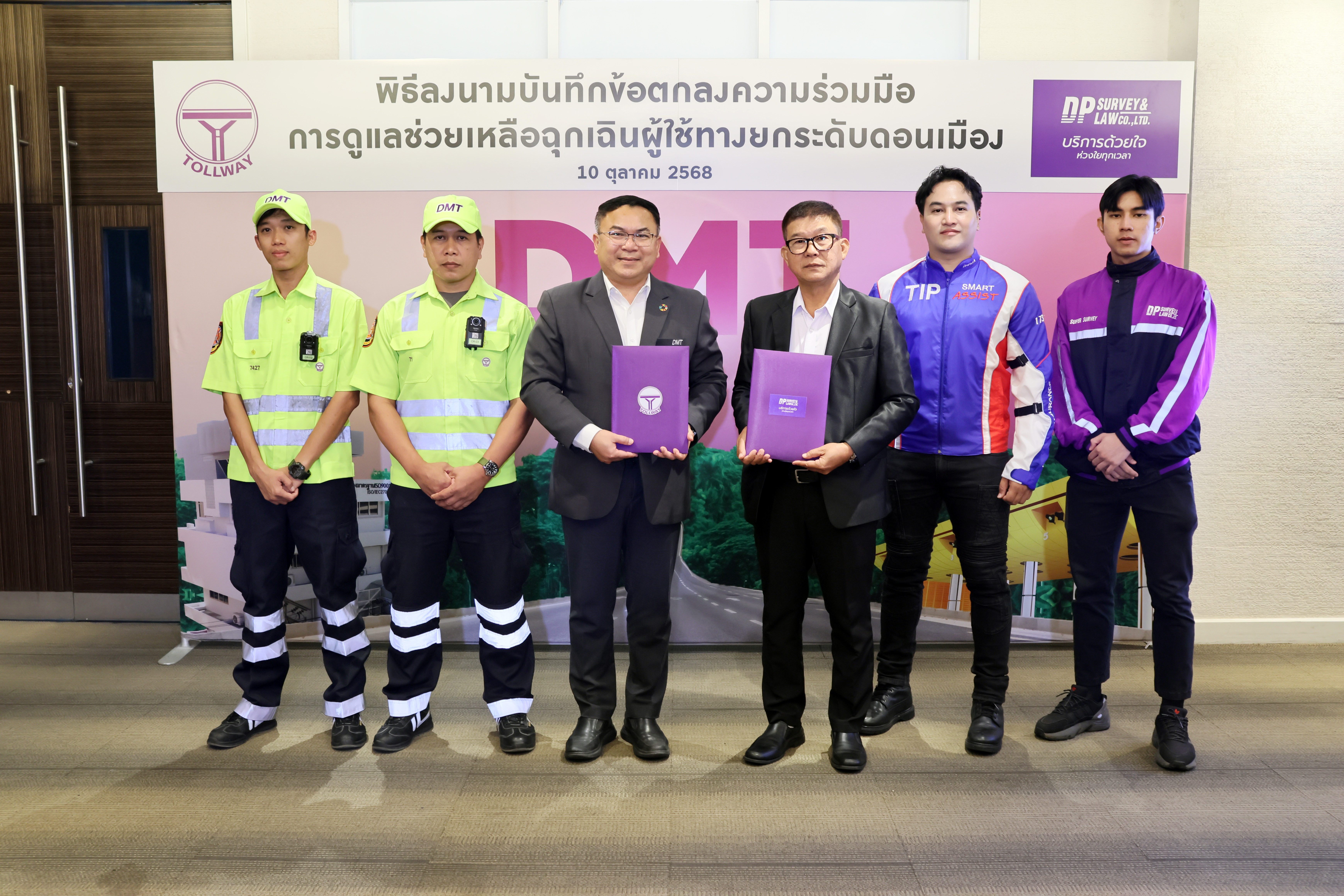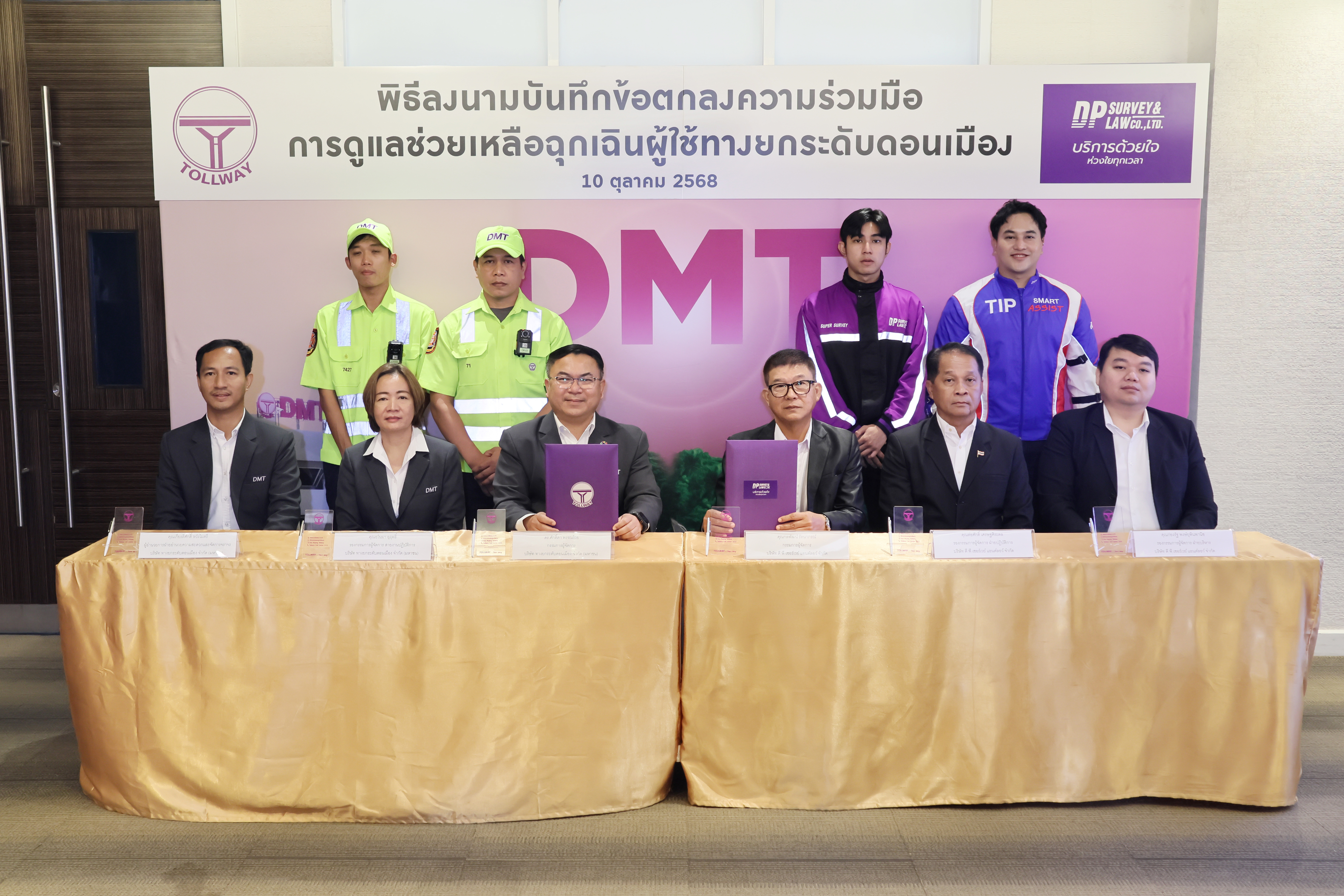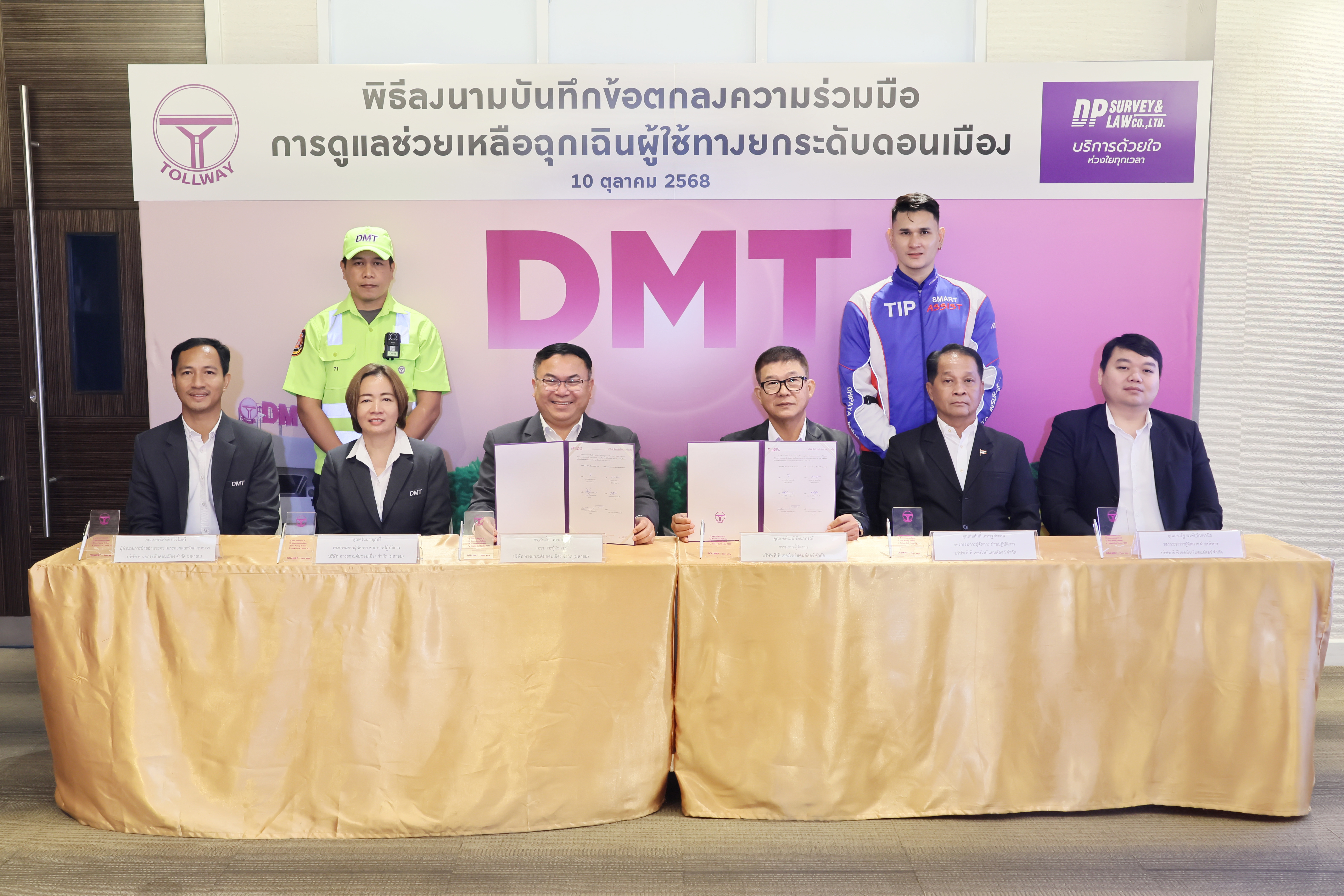 บริษัท ดี พี เซอร์เวย์ แอนด์ ลอว์ จำกัด (DP Survey) ผนึกกำลังกับ บริษัท ทางยกระดับดอนเมือง จำกัด (มหาชน) หรือ DMT ร่วมลงนามบันทึกข้อตกลงความร่วมมือ (MOU) ในโครงการ “ดูแลช่วยเหลือฉุกเฉินผู้ใช้บริการยกระดับดอนเมือง” เพื่อยกระดับมาตรฐานการบริหารจัดการเหตุฉุกเฉินให้รวดเร็ว ปลอดภัย และมีประสิทธิภาพสูงสุด